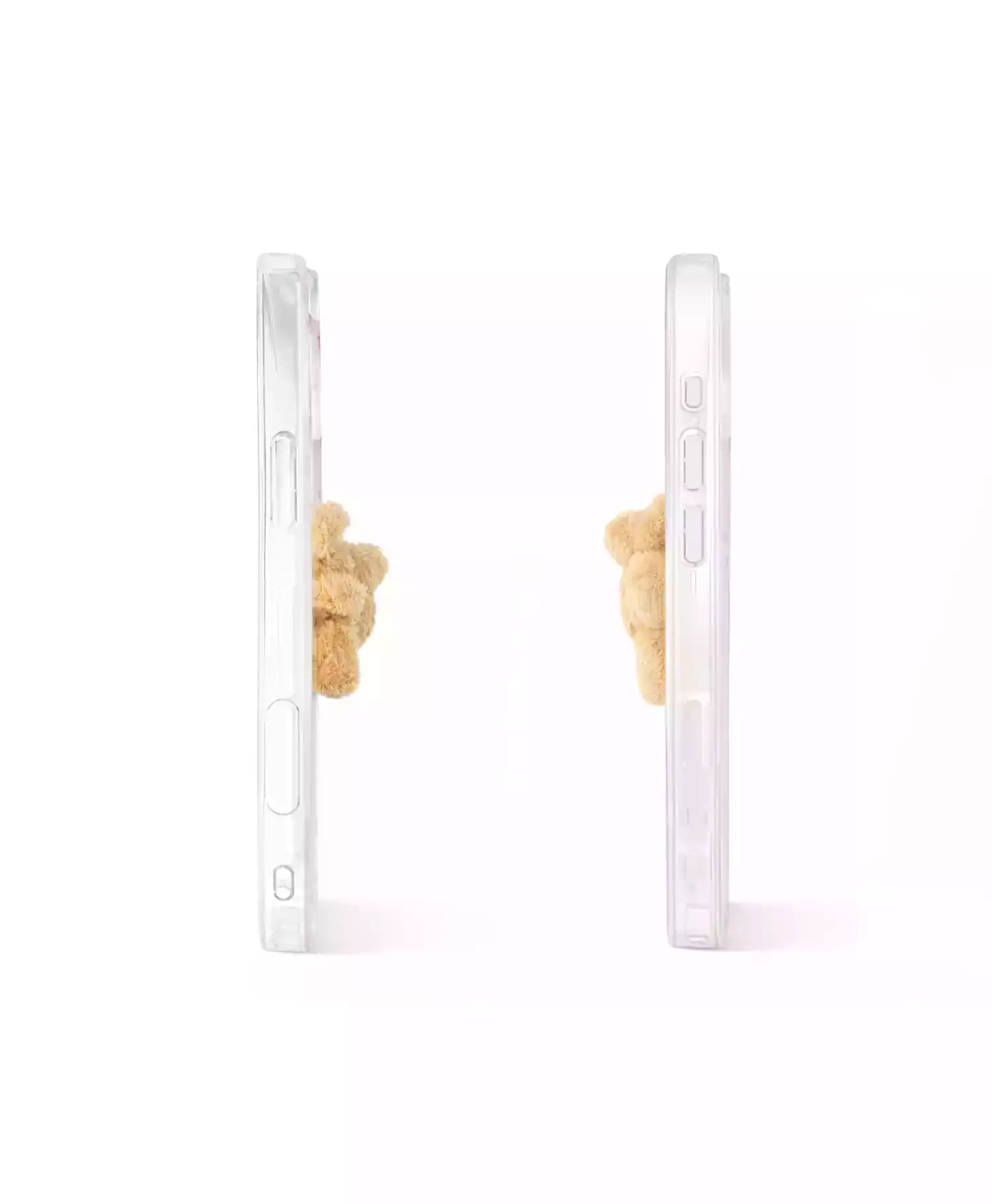 یکی دیگر از ویژگیهای کاربردی این قاب، تاثیر آن بر گریپ (Grip) یا همان چسبندگی گوشی در دست است. بدنه پلاستیک سخت این قاب به گونهای پردازش شده که ضمن شفافیت و زیبایی، از لیز خوردن گوشی جلوگیری میکند. علاوه بر این، وجود عروسک پولیشی در پشت قاب، ناخودآگاه مانند یک تکیهگاه برای انگشتان عمل میکند و باعث میشود گوشی محکمتر در دست جای بگیرد. این طراحی هوشمندانه ریسک افتادن گوشی از دست را به شدت کاهش میدهد، بهویژه هنگام گرفتن عکسهای سلفی که معمولاً گوشی را با یک دست نگه میدارید. رنگهای سفید و نخودی این قاب نیز با ثبات رنگی بالا تولید شدهاند و در اثر استفاده مداوم یا تعریق دست، دچار تغییر رنگ یا کدر شدن نمیشوند، بنابراین قاب شما همیشه نو و تمیز به نظر میرسد.