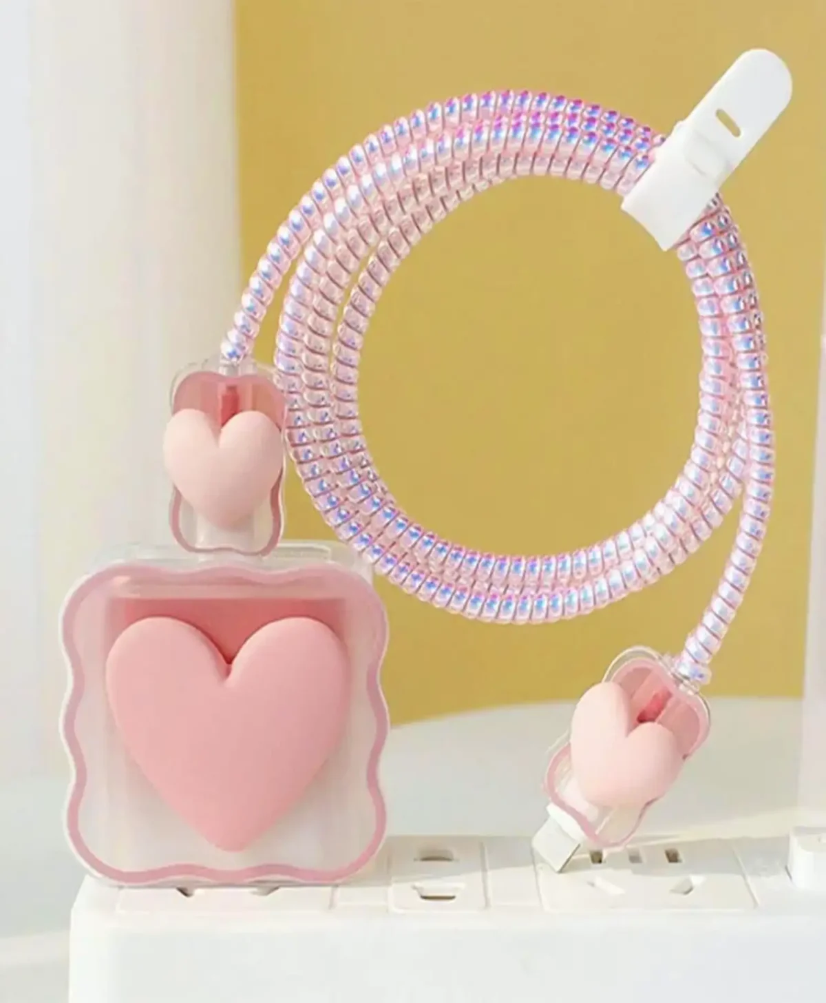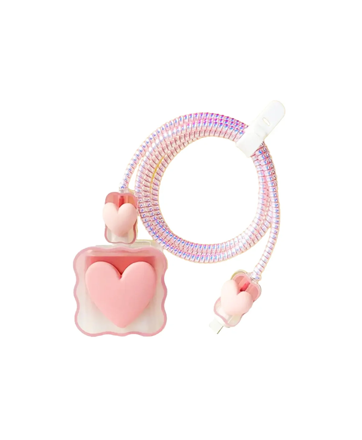 کاور شفاف فانتزی آداپتور 20W آیفونی با محافظ کابل طرح قلب